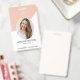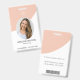 Este crachá é uma forma moderna e profissional de identificar funcionários no local de trabalho. Ele é projetado com uma paleta de cores rosa e cinza e apresenta tanto um número de identificação único quanto uma foto para fácil identificação.