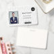 Personalize o crachá de identificação alterando o texto, foto, código de barras, número de identificação e o logotipo.