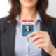Um crachá de funcionarios profissional para a sua organização de negócios. design vermelho, branco e azul moderno. Adicione fotos, nome, número de identificação e outras informações importantes aos funcionários. As informações também podem ser adicionadas ao verso. crachá oficial para ajudar seu funcionarios a se destacar e ser identificado onde necessário.