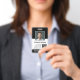 Branco e Preto - Um design básico de negócios que destaca os logotipos do seu escritório e o nome do funcionário. Este design de escritório tradicional também inclui um número de identificação do crachá, data de validade e enfermeira ou outro título.