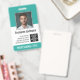 Branco e Verde Teal - Um design empresarial básico que destaca os logotipos do seu escritório e o nome do funcionário. Este design de escritório tradicional também inclui um número de ID do crachá, data de validade e enfermeira ou outro título.