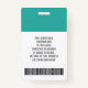 White e Teal Green - Um design básico de negócios que destaca os logotipos de seu escritório e o nome do funcionário. Este design de escritório tradicional também inclui um número de ID de crachá, data de validade e enfermeiro ou outro título. VOLTA: você pode adicionar um código de bar de digitalização na parte traseira e um local para adicionar informações se o crachá for perdido. Você também pode mudar a cor do plano de fundo. Clique no botão personalizar e escolha uma cor de fundo para a frente e para trás.