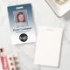Azul Marinho - Um design empresarial personalizado básico que destaca os logotipos do seu escritório e o nome do funcionário. Você pode adicionar uma barra de código de scan na frente e no verso.