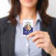 Personalize esses crachás verticais incluindo a foto e o nome de um funcionário, além de duas linhas de texto personalizado extra para detalhes como número de ID do funcionário, função ou título, local ou outras informações importantes. Coloque seu logotipo no topo. Há também um campo de texto personalizado adicional no verso para informações de devolução ou outras especificações.