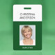 Nome do Trabalho Corporativo Profissional, Foto e Cargo Título Verde e Crachá de Negócios Verticais de Foto para ID Branco. Este design é simples e fácil de usar ao mudar o seu primeiro e sobrenome, bem como o seu título de trabalho e o seu business head shot.