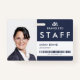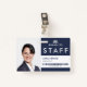 Um crachá de identificação comercial para empresas, incluindo uma fotografia pessoal, o logotipo da empresa e o nome comercial. Também inclui uma categoria para identificar funcionarios, visitantes ou convidados. Além disso, inclui um nome e uma profissão de pessoa, bem como um código de bar de identidade facultativo. Este cartão corporativo de identificação de crachá fotográfico é ideal para qualquer empresa que queira ser capaz de identificar o funcionarios, visitantes ou convidados.