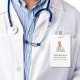 Crachá de foto do escritório médico com modelo de imagem de um médico que você pode substituir por sua foto de um Doutor, Enfermeira, assistente ou qualquer ocupação de campo de saúde. Projetado para um hospital ou instalação médica que tenha funcionarios médico em casa.