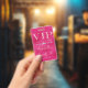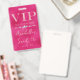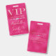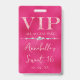 Este crachá de acesso total VIP glamoroso apresenta um design cintilante e feminino em um fundo rosa quente. O título VIP é impresso em uma fonte de brilho rosa suave, seguido pelo título do evento. Uma faixa de diamantes separa o texto. O local e a hora da festa ou evento são impressos no verso. É perfeito para uma festa de aniversário, sweet 16, chá de noiva ou outra celebração elegante.