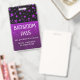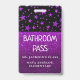 Falso metálico roxo brilha por detrás de um passe de banheiro fácil de ler e atualizar. Atualize o texto para mostrar o professor e o nome da escola, assim como o propósito do crachá. Disponível em muitas outras cores brilhantes e designs estelares.