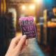 Design brilhante, cor-de-rosa-quente e cintilante preto e brilhante, com brilho brilhante, sobre fundo preto e cor-de-rosa