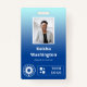 Crachá de funcionário de escritório vertical com um simples design contra um gradiente de azul pálido a azul-céu. Adicione uma foto do funcionário junto com o nome e a profissão. Personalize ainda mais com dois logotipos de negócios.