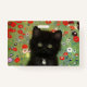 Crachá com um gatinho Gustav Klimt! Este gatinho preto veste um colar prateado e se senta num campo de flores vermelhas, azuis, brancas e amarelas. Um presente maravilhoso para amantes de gatos e entusiastas de arte austríacos!