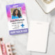 Personalize esses crachás verticais do pessoal médico com uma foto e um nome de funcionário, juntamente com vários campos de texto personalizados para título ou função, nome do hospital ou do estabelecimento de saúde, número de ID do funcionário ou válido até a data. O "AIDE DA SAÚDE DOMÉSTICA" ou o texto desejado aparece na parte inferior em letras brancas em negrito para uma identificação fácil ao visitar os doentes em casa. Personalize com um código de barras na parte traseira, se necessário, juntamente com informações de devolução ou outros detalhes.