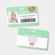 Crachá do AIDE DE SAÚDE REAL de ID de Foto Moderno. Design com antecedentes médicos verdes e brancos, fotografia do solteiro, nome do hospital/lar, profissão e nome. Personalize com seu código de bar e detalhes de contato. Os crachás de ID modernos simplificam a identificação de funcionários por parte dos clientes e clientes. Para editar este modelo, clique em personalizar mais.