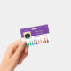 Um crachá de foto horizontal roxo e branco com uma ilustração de rabisco de lápis coloridos no fundo. Personalize-a com a foto retrato do funcionário de 2 polegadas, seu nome e título, e o nome e endereço da escola. É um ID ideal para professor de arte, descendente de arte ou qualquer outro funcionarios do ensino fundamental. © ArianeC Ilustrações — Todos os direitos reservados