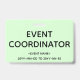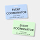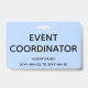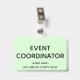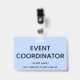 Este design conservador de crachás mostra a mensagem "EVENT COORDENATOR". Um crachá como esse poderia ser usado para mostrar que o usuário está afiliado a um evento. [~Z0000307]
