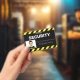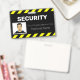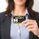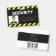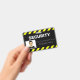 Uma linha de estilo de alerta ou sinal de aviso preto-e-amarelo enquadra as partes superior e inferior do crachá de ID, fazer-o altamente visível e fácil de reconhecer.