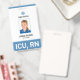 Um crachá moderno para funcionarios hospitalares como enfermeiras registradas (RN). Todos os elementos de design podem ser personalizados para se adequarem às cores do hospital ou do local de trabalho. Ideal para os funcionários do setor médico que necessitam da sua designação, que são expostos de forma destacada, como enfermeiros registrados, assistentes de enfermagem, profissionais de enfermagem e médicos.