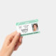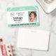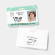 Personalize este crachá de identificação com foto fácil e rapidamente com uma foto, logotipo, nome, título e ID de funcionário. Basta pressionar o botão personalizar para reorganizar e formatar ainda mais o estilo e a colocação do texto. (c) The Happy Cat Studio.