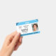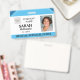 Personalize este crachá de identificação com foto, logotipo, nome, cargo e ID do funcionário de forma fácil e rápida. Basta pressionar o botão personalizar para reorganizar e formatar ainda mais o estilo e a disposição do texto. (c) The Happy Cat Studio.