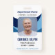 Crachá azul, marinho azul e branco de ID de funcionário com formas em três tons de azul. Crachá de ID do funcionário personalizado com nome, título, número de ID e um código de bar no verso.
