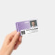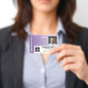 Versão horizontal com um padrão tribal roxo e branco Um design de negócios moderno que destaca o logotipo do seu escritório e o nome do funcionário. Esta tendência de design de pequenas empresas também inclui um número de ID de crachá, data de expiração e uma grande área para enfermeira, essencial ou qualquer posição. VOLTA: você pode adicionar um código de bar de digitalização na parte traseira e um local para adicionar informações se o crachá for perdido. Você também pode mudar a cor do plano de fundo. Clique no botão personalizar e escolha uma cor de fundo para a frente e para trás.