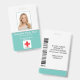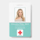 Crachá de identificação com foto de funcionário hospitalar profissional médico aqua ou turquesa e branco.