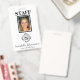 Este crachá de identificação de foto de funcionarios personalizado e profissional apresenta um design preto e branco simples. Um exemplo de foto é colocado no centro que você pode substituir por sua própria foto ou imagem. O logotipo da empresa ou da empresa é impresso abaixo da foto, seguido do nome do funcionário e do cargo. A parte traseira do crachá de ID contém um código de bar de exemplo que você pode substituir por seu próprio ou removê-lo se não for necessário.