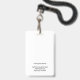 Personalize esses crachás verticais de pessoal médico com uma foto e um nome de funcionário, juntamente com vários campos de texto personalizados, juntamente com a adição do logotipo. O título ou a função aparece na parte inferior em caracteres negros para facilitar a identificação. Personalize com informações de devolução ou outros detalhes no verso.