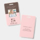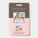 Crachá de ID de Funcionário de Chef de Padaria com Foto. Personalize este design personalizado com a foto do seu funcionário, nome e detalhes da empresa. Este design apresenta um logotipo de bolo elegante contra um fundo rosa. Perfeito para padarias, lojas de bolos e pastelarias, cafés, empresas de catering, restaurantes ou qualquer negócio relacionado a serviços alimentares.
