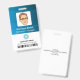 Cartões de identificação de funcionário do Blue Manager com o logotipo e o código de barras da empresa.