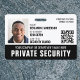 Crachá de ID de segurança personalizado com texto totalmente personalizável. Este modelo editável inclui sua foto de ID, seu nome, cargo, número de ID, nome da empresa, data de emissão, data de expiração, logotipo e um código QR digitalizável. Todo o texto pode ser personalizado ou excluído, para que você possa personalizá-lo de acordo com a sua empresa. Um design versátil que se adapta a muitos locais de trabalho e profissões diferentes, incluindo segurança privada, guarda de segurança, oficial de segurança, segurança de loja, guarda-costas pessoal, porteiro oficial, trabalhador de varejo, funcionarios médico e muito mais. Cores impressas: preto e branco. Compre a coleção para obter mais crachás e etiquetas para venda on-line, projetados para o setor de serviços de segurança.