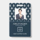 Cartão de identificação de empresa de fotos moderno com código de bar sobre cor damasco francesa branca em azul. Informações adicionais podem ser adicionadas à parte traseira deste crachá de ID de negócio