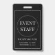 Simples crachá de identificação de passe de bastidores para equipe de evento branco sobre preto.