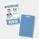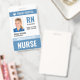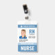Crachá de ID do Enfermeiro do Hospital da Equipe Médica. Ideal para cartões de identificação de clínicas e hospitais para identificar o pessoal. Inclui unidade ou departamento do hospital para controle de acesso fácil. Mostra iniciais de certificação, como RN, LPN ou NP de forma destacada.