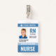 Crachá de ID do Enfermeiro do Hospital da Equipe Médica. Ideal para cartões de identificação de clínicas e hospitais para identificar o pessoal. Inclui unidade ou departamento do hospital para controle de acesso fácil. Mostra iniciais de certificação, como RN, LPN ou NP de forma destacada.