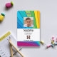 Crachá de identificação do funcionário da empresa com modelos criados para você. O fundo é um abstrato moderno num padrão de raios solares arco-íris.