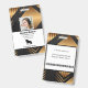 Crachá de identificação do funcionário da empresa com modelos criados para você. O fundo é um abstrato moderno em preto, branco e ouro.