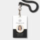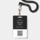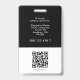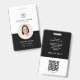 O Crachá de ID da empresa negra Dourado círculo de funcionários modernos é uma forma elegante e profissional de mostrar as informações de seus funcionários, com recursos personalizáveis para ajustado de sua empresa. Este crachá inclui uma foto, logotipo, nome, código QR, tudo exibido em um design de tema branco e preto minimalista. Os elementos personalizáveis o tornam uma solução versátil e prática para qualquer empresa ou organização.