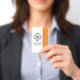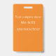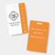 Este crachá de identificação para um trabalhador voluntário ou funcionário apresenta um fundo branco com um logotipo de amostra no centro. Você pode personalizar o crachá de ID para exibir o logotipo da sua empresa, empresa ou organização ou sua própria imagem personalizada. Há uma área abaixo do logotipo para impressão um nome de funcionário ou outro texto. O título "VOLUNTEER" é impresso no lado direito sobre uma faixa laranja. A parte traseira do crachá de ID tem um fundo cor de laranja com texto branco, onde você pode incluir o número de telefone da sua empresa ou outras informações.