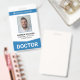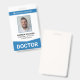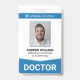 Um crachá moderno de identificação para hospitais, clínicas e instalações médicas. O modelo de ID do crachá de funcionarios médico inclui uma foto de ID do seu funcionário, o nome e profissão do funcionário, bem como um número de ID do crachá. O nome do grupo definido como "doutor" é exibido proeminentemente na parte inferior com uma seta como design apontando-a para fora. A parte de trás do crachá de ID de funcionarios do hospital é intencionalmente deixada vazio e aberta para você adicionar mais informações sobre o funcionário e o hospital ou clínica...