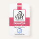 Cobrir apresenta um design de bloco de colunas cor-de-rosa escuro que destaca os detalhes das informações do crachá.