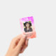 Crachá de identificação com fundo de aquarela roxo e vermelho para salão, spa, maquiador, cabeleireiro, funcionário, equipe. Use a opção personalizar este modelo para alterar o texto na frente e atrás. Para ajustar a foto e o texto, use a opção personalizar ainda mais. Para qualquer ajuda na alteração do texto, use a opção de mensagem abaixo do nome da nossa loja. Crédito da foto: SnapwireSnaps no Pixabay.com
