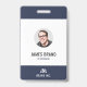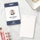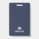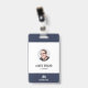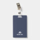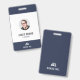 Um crachá de identificação empresarial moderno com a foto, nome e cargo de um funcionário. O crachá também inclui o nome e o logotipo da empresa na frente e no verso. A cor principal do crachá pode ser personalizada alterando a cor do fundo.