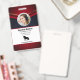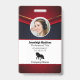 Crachá de identificação de funcionário da empresa com modelos criados para você. O fundo é um moderno abstrato em vermelho, branco e cinza marinho.