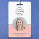Crachá de ID corporativo simples e na moda, que pode ser facilmente personalizado com a foto, o nome, a posição, o logotipo da empresa, os detalhes comerciais e o código QR ou código de barras do seu funcionário. O design na moda apresenta uma tipografia minimalista moderna e um banner de blocos coloridos em rosa-claro para se destacar da multidão. A imagem mostrada é apenas para fins de ilustração para ser substituída pela sua própria foto. A imagem de marcador de posição é de uma mulher feliz com cabelo branco ondulado.