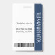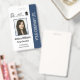Personalize facilmente este crachá de identificação de foto de funcionário profissional de estilo moderno azul com seus detalhes personalizados.
