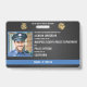 A crachá de identificação personalizável do departamento de polícia apresenta um emblema da polícia no topo que pode ser personalizado para o seu departamento, bem como um local para o logotipo do estado. Personalize com a foto do oficial à esquerda. Ao lado da foto, o nome do oficial, número da crachá, patente e departamento são exibidos. Adicione sua própria código de barras no verso do cartão, juntamente com as datas de emissão e expiração, e descrição do oficial, capitão, chefe ou funcionário do escritório.