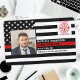 Identifique-se facilmente e ao seu bombeiro na estação com essa placa de identificação personalizada da bandeira da linha vermelha fina com foto, logotipo, código de barras, crachá de identificação de bombeiro. Personalize com foto de bombeiro, logotipo da estação, nome, número de identificação e departamento de bombeiros. Personalize a parte de trás com o código de barras do seu corpo de bombeiros ou qualquer outra informação. Este crachá de identificação de bombeiro da linha vermelha fina é perfeito para todos os bombeiros, bombeiros voluntários, bombeiros, chefe, capitão e tenente. DIREITOS AUTORAIS © 2020 Judy Burrows, Black Dog Art - Todos os Direitos Reservados. Placa de Identificação de Bombeiro Foto Personalizada Crachá de Identificação de Bombeiro
