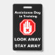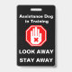 Placa de identificação de cão de assistência em treinamento, com uma mão de pare/não toque e "OLHE PARA LONGE AFaste-se"
